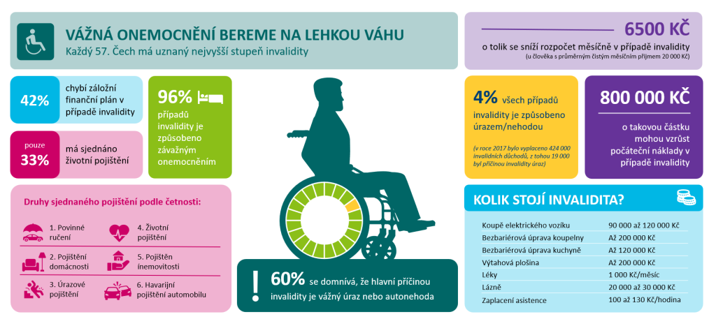 Invalidita patří mezi nejzásadnější životní rizika, protože dokáže zcela změnit schopnost pracovat a vydělávat. Pojištění by mělo pokrýt vaše dluhy a zároveň vytvořit dostatečnou finanční rezervu na dlouhé období. Ideální je krytí alespoň 5–7násobku ročního příjmu, aby bylo možné udržet stabilní životní úroveň i při výrazném omezení příjmů. V současné době máme v České republice tři stupně invalidity.